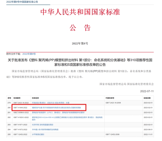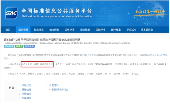 近日,由中廣核久源(成都)科技有限公司(簡稱“中廣核久源”)主持起草的國家標準《輻射防護儀器 用于探測放射性物質非法販運的背負式輻射探測器》GB/T 41646-2022,通過中國國家標準化管理委員會批準并在國內首次發布生效,將于2023年2月1日正式實施。